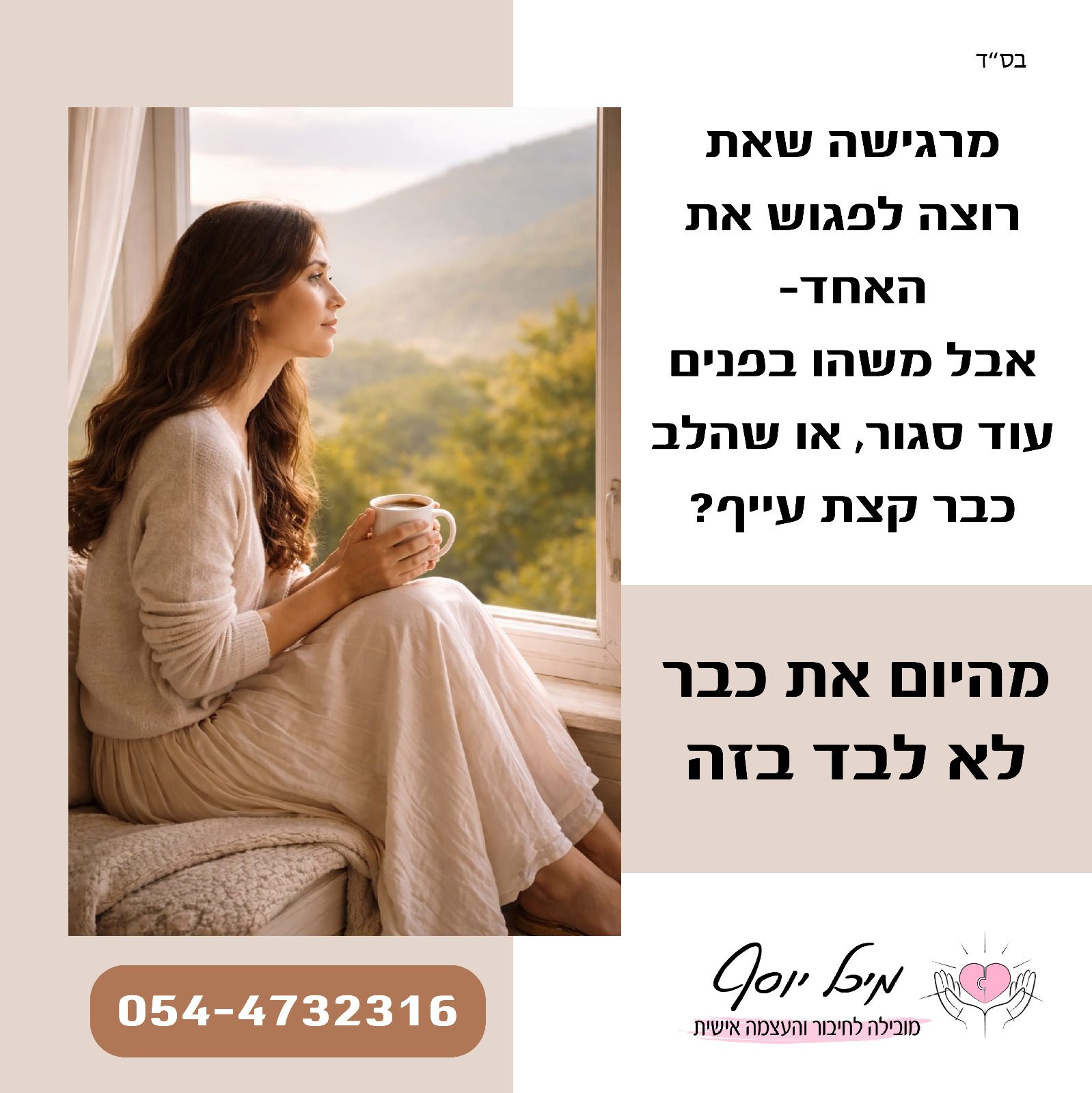 היום אני מלווה נשים רווקות שנמצאות בדיוק במקום הזה – עושות השתדלות , נפגשות, רוצות מאד, אבל מרגישות שמשהו עדיין לא מדויק או לא זורם כמו שהיו רוצות.
